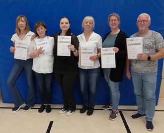 Die Tänzerinnen und Tänzer Birgit Thiel, Sylvia Schirra, Gisela Kannengießer, Natalie Jakob, Jenny Dietrich und Jürgen Hemmer hatten im letzten Jahr bereits das Abzeichen in Bronze erlangt – daher konnten sie dieses Jahr um Silber tanzen – mit Erfolg. Die Abzeichen werden in aufsteigender Reihenfolge von Bronze über Silber, Gold, Gold mit Kranz bis Gold mit Kranz und Zahl verliehen. In jedem Kalenderjahr kann grundsätzlich nur eine Abnahme erbracht werden. Nun geht es wieder mit viel Freude und Elan ans Training, damit im nächsten Jahr eine weitere Herausforderung gemeistert werden kann.