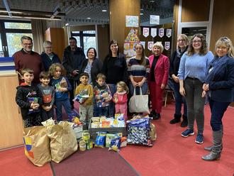 Die Legende des heiligen Sankt Martins steht wie kaum eine andere für Solidarität und Mitgefühl. Demnach teilte der heilige Martin an einem kalten Wintertag seinen wärmenden Mantel ganz selbstlos mit einem frierenden Bettler. Die städtische Kita Am Schlösschen nahm dies zum Anlass, den Kindern genau diese Werte über eine Spendenaktion näher zu bringen. Gemeinsam mit den beiden anderen städtischen Kitas Bengesen und Berg riefen sie bei den Familien der Kinder zu der gemeinsamen Spendenaktion „Teilen wie St. Martin“ auf. Hierzu sammelten die Kitas gut haltbare Lebensmittel für hilfsbedürftige Haushalte. Vertreter*innen der Sozialen Initiative Püttlingen e.V. (SIP), hier u.a. der 2. Vorsitzende Jürgen Detzler und Beisitzerin Tanja Friedrich, nahmen die zahlreichen Spenden am Montag, den 13.11.2023, im Mehrgenerationenhaus der Stadt Püttlingen (MGH) dankend entgegen. Die Spenden können so in Form der „Mahlzeittasch“ an betroffene Personen weitergegeben werden. „Eine tolle Aktion, die den Kindern der städtischen Kitas so wichtige Werte mit auf den Weg gibt. Ich danke allen Beteiligten für die großartige Spende!“, so Bürgermeisterin Denise Klein.