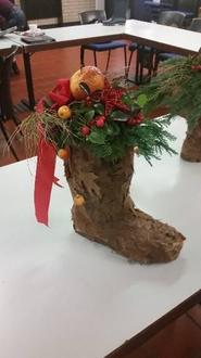 Ein Gummistiefel wird zum winterlichen Hingucker für den Eingangsbereich. Der Stiefel wird mit Laub beklebt und dient als Steckgefäß. Mit Zweigen, Zapfen und Beeren entsteht ein dekorativer Nikolausstiefel.