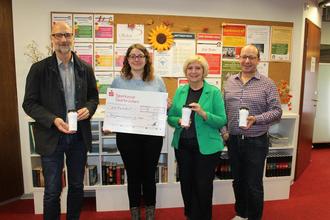 Einrichtungsleiter Patrick und Pflegedienstleiter Johannes Schmitt vom Caritas SeniorenHaus St. Augustin konnten dieser Tage dem Mehrgenerationenhaus der Stadt Püttlingen einen Scheck in Höhe von 400,00 EUR überreichen. Dies ist der Erlös aus dem Verkauf von Thermo-Kaffeebechern, die die Einrichtung angeschafft und verkauft hat. Sie wollte damit einen Beitrag zur Nachhaltigkeit leisten und den Verbrauch von Coffee-to-go-Bechern reduzieren. Auch viele Mitarbeitende nehmen diese Gelegenheit zum Schutze der Umwelt wahr. Die Einrichtungsleitung freute sich sehr, das Mehrgenerationenhaus, das wertvolle Arbeit zum Wohle der Püttlinger Bürger leistet, mit dieser Spende unterstützen zu können. Bürgermeisterin Denise Klein und Koordinatorin Claudia Ley nahmen den Scheck dankend entgegen.
