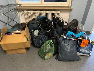 Die Kleidersäcke und Kisten wurden im Ruheraum zwischengelagert