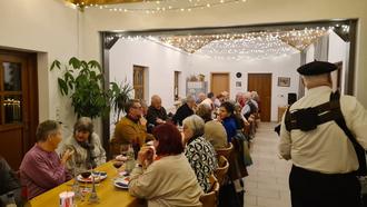 Zum Primeurabend am 21.11.2025 im Dorfgemeinschaftshaus Herchenbach, den Räumlichkeiten des OGV Herchenbach, hatte der Beirat für Seniorinnen und Senioren eingeladen. Dieser Einladung zu der mittlerweile schon traditionellen Veranstaltung sind viele Interessierte gerne gefolgt. Die Vereinsmitglieder des OGV Herchenbach reichten eigens zubereiteten Flammkuchen, dazu gab es Primeurwein, ganz wie der Veranstaltungstitel vermuten ließ. Für noch mehr französisches Flair sorgte Heinrich Dernbecher am Akkordeon. Damit die Besucherinnen und Besucher gut nach Hause kamen, übernahm der Bürgerbus e.V. den Hol- und Bringservice. Unterstützt wurde dieses Angebot vom Regionalverband Saarbrücken und der Stadt Püttlingen.