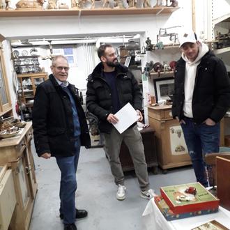 VIG-Vorstandsmitglied Stephan Lehberger erklärt Marco Wunn und Jonas Jacob von der Holzer Geschichtswerkstatt Exponate der Riegelsberger Heimatstube.