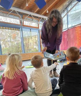 Im Dezember besuchte Christina Barbian von der Buchhandlung Balzert mit vielen beliebten Bilderbüchern im Gepäck die Kinder der Kita Am Schlösschen, um ihnen aus den mitgebrachten Büchern vorzulesen. Vom Grüffelo bis zur Raupe Nimmeratt war alles dabei und die Kinder konnten in Kleingruppen in gemütlicher Atmosphäre den spannenden Geschichten lauschen. Sie hatten sichtlich Spaß dabei und konnten in die Welten der vorgelesenen Geschichten eintauchen. Auch die vielen tollen Bilder in den Büchern, die Frau Barbian beim Vorlesen zeigte, kamen bei den Kindern super an.
