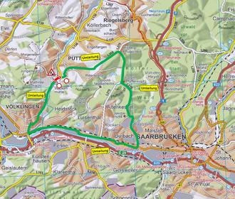 Die Umleitung erfolgt großräumig über Riegelsberg, Altenkessel, Luisenthal und Völklingen. Die Gegenrichtung ist analog ausgeschildert. Die Zufahrt zum Industriegelände Steinritsch ist gewährleistet. Der nebenliegende Geh- und Radweg wird gesperrt. Eine Umleitung ist ausgeschildert. Die vorgenannten Bauzeiten stehen unter dem Vorbehalt geeigneter Witterung.