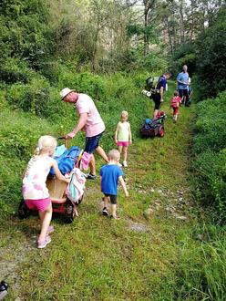 Auf dem Weg dorthin erzählte der Wehrführer Mario Göbel die Sage von der Entstehung der Horsmarschen Haube. Im Riesental sammelten die Kinder und ihre Helfer auf dem vorbereiteten Platz Steine und Holz und bauten Feuerstellen auf, um das Mittagessen dort zu kochen.