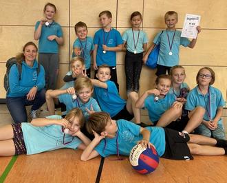 Am 07.11.2023 fand in Bad Langensalza die Kreismeisterschaft im Felderball statt. Diese wurde unter acht Schulen des Landkreises ausgetragen. Nach dem Vorjahreserfolg unserer ehemaligen Viertklässler, ging die diesjährige Schulmannschaft, bestehend aus 13 Schüler und Schülerinnen, an den Start, um den Titel zu verteidigen. Dieser Aufgabe hielten sie ehrenvoll stand. Mit großer Motivation, Einsatzbereitschaft, taktischem Spielverständnis, einer gewissen Portion Demut und großem Mannschaftszusammenhalt gewannen sie 6 von 7 Spielen und waren dem Ziel, den Pokal zum zweiten Mal in Folge nach Hause zu holen, sehr nah. Mit den Spielern der Nikolaischule lieferten sie sich ein „Kopf-an-Kopf-Rennen“. Es war ein spannendes Spiel auf hohem Niveau, das jedes Sportlehrerherz höherschlagen ließ. Am Ende führten beide Mannschaften punktgleich die Tabelle an und der direkte Vergleich führte zur Entscheidung. Da unsere Schüler und Schülerinnen leider 7:10 gegen die Mannschaft der Nikolaischule unterlagen, mussten sie sich letztendlich knapp geschlagen geben.