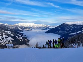 Die neu eroberten Pisten hinab vom Arbiskogel (1830m) boten immer mehr Gefälle, so dass bei der Abfahrt zunehmend „Pommes“ - die Parallelschwungtechnik - erprobt wurde. Mit zunehmender Zuversicht zum eigenen Können steigerten sich auch Spaß und Geschwindigkeit. Wir genossen die „stille Stunde“ zwischen 12 und 13 Uhr in unserem kleinen Skigebiet, wenn andere Skigruppen bereits am Mittagstisch saßen. Auch das Angebot der „Tubing“-Bahn nahmen wir mit Freude wahr. Danach schmeckte das landestypische Menü umso besser.