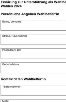 | • | nicht selbst zur Wahl steht und nicht als Vertrauensperson oder stellvertretende Vertrauensperson für einen Wahlvorschlag benannt ist. |