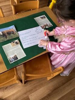 In „Als-ob“- Situationen verköstigten die Kinder ihre Puppen mit Milch und auch in den bereitgelegten Bauernhof-Kinderbüchern wurde viel zum Thema „Milch“ geschaut. Sie malten Bilder und bastelten Kühe.