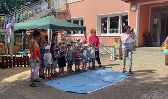Am Freitag den 04.07.2025 verabschiedeten sich Romy, Maya, Dominic, Kurt, Erik, Theo und Till mit einem tollen Programm von ihrer Kindergartenzeit. Sie blickten zu diesem Anlass mit einem lachenden und weinenden Auge auf die vergangene Zeit zurück.