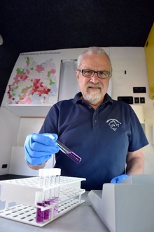 Der VSR-Gewässerschutz wurde bereits 1980 als Zusammenschluss verschiedener Bürgerinitiativen gegründet und setzt sich seit über vier Jahrzehnten für sauberes Wasser ein. Das gelbe Labormobil ist von April bis September unterwegs um Brunnenwasserproben zu untersuchen und Bürger am Informationsstand zu informieren. Im Winter werden dann Flüsse und Bäche beprobt, um festzustellen, inwieweit das Nitrat im Grundwasser zur Belastung in den Flüssen und Bächen führt. Für viele Bäche stellt das Zusickern des belasteten Grundwassers eine Hauptursache für die starke Nitratbelastung dar.