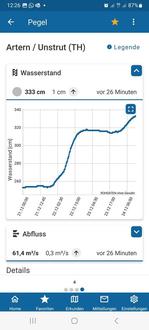 Als erstes stieg die Unstrut an und am Morgen des Heiligabends war die Weide teilweise überflutet. Der Mühlgraben erreichte die Unterkante der Brücke, im Salinepark stand die Unstrut bis zur vorletzten Stufe der Bootseinstiegstelle.