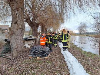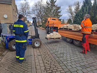 Auch die Kameradinnen und Kameraden in Kalbsrieth und Ritteburg stapelten Sandsäcke auf den Dämmen auf.