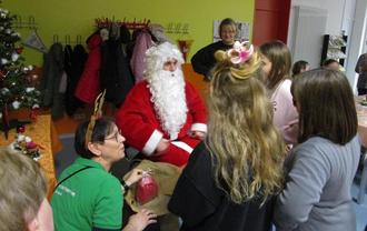 Highlight des Nachmittags war der Besuch des Weihnachtsmanns, der in diesem Jahr als besonders imposante Erscheinung auftrat: groß, respekteinflößend und mit einer ruhigen, freundlichen Ausstrahlung, die sowohl Kinder als auch Jugendliche in ihren Bann zog. Er verteilte kleine Überraschungen, hörte aufmerksam zu und nahm sich Zeit für Gespräche mit den Kindern, wodurch eine festliche und warme Atmosphäre entstand.