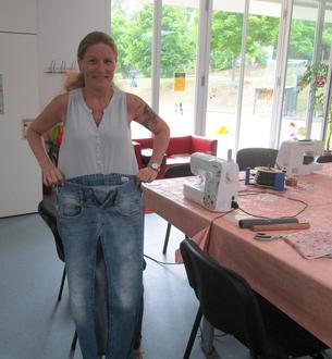 Zu Beginn des Kurses wurde gemeinsam überlegt, wie sie am besten in stylische Röcke umgewandelt werden können. Mit Scheren, Nähmaschinen und Nähutensilien bewaffnet, machten sich die Teilnehmerinnen und Teilnehmer dann ans Werk. Die Jeanshosen wurden zugeschnitten, umgenäht und mit besonderen Details verziert.