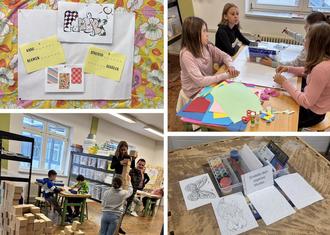 Die Lernwerkstatt ist für handwerkliche und naturwissenschaftliche Experimente ausgestattet. Auch gemütliche Lese- und Arbeitsinseln laden dazu ein, in kleinen Gruppen oder allein zu lernen. In der Eröffnungsstunde arbeiteten und forschten die Schülerinnen und Schüler der Klasse 6a zum Thema „Muster“. Mit viel Enthusiasmus und Kreativität stapelten sie kleine Kartons zu einem stabilen Turm oder erstellten ein Gemeinschaftsbild aus Papierschnipseln.
