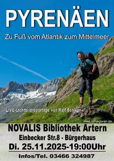 eure NOVALIS Bibliothek und die THINKA bieten euch ein Dia-Abenteuer in die Pyrenäen mit Ralf Schwan am Dienstag, den 25.11. um 19 Uhr im Veranstaltungsraum des Bürgerhauses/ Einbecker Str. 8.