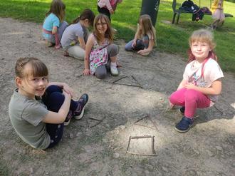 Als Abschluss unseres Themas gingen wir gemeinsam in die Saline, sammelten dort viele Stöcker sowie andere Naturmaterialien und im Anschluss legte jeder für sich eine Form seiner Wahl daraus. Auch hier staunten unsere Erzieher, wie gut wir uns alle Formen schon merken können.