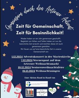 Wie bereits im letzten Jahr möchten WIR gemeinsam mit unseren Kooperationspartnern Momente der Gemeinschaft VON & MIT Arternern schaffen und zusammen einige besinnliche Momente verleben.