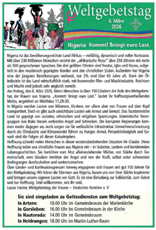 | 18.00 Uhr | Artern - Weltgebetstag - |