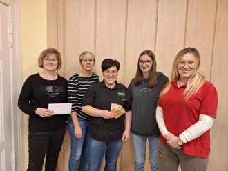 Die Kassenwartin Nancy Seifert von WIR für Artern e.V. nimmt freudig die Spende der Familieninitiative „Flöhchen“ entgegen.