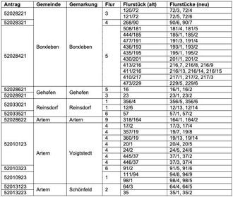 Durch das Landesamt für Bodenmanagement und Geoinformation, Katasterbereich Artern, wurde das Liegenschaftskataster fortgeführt.