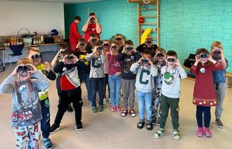 Die gesamte Gruppe lernte, was es heißt, am, im und auf dem Wasser unterwegs zu sein. Ausgerüstet mit Ferngläsern und Sanitätsrucksack erprobten sich die Kinder im Alter von fünf bis sechs Jahren durch verschiedene Stationen. Dabei nutzten sie die Räumlichkeiten der Einrichtung.
