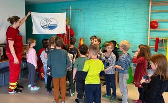 „Wasser zieht Kinder magisch an, birgt aber auch Gefahren“, so die Deutsche Lebens-und Rettungsgesellschaft weiter. Mit Hilfe eines interaktiven Vortrages, bei dem die kleinen Zuhörer mit viel Begeisterung mitmachten, konnten die Kinder lernen, wie sie Gefahren erkennen und sich selbst sowie anderen in Notsituationen helfen können.