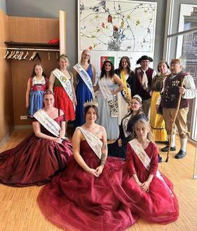 Wir Hoheiten trafen uns am Restaurant „Schwan“, um gemeinsam mit Fliederkönigin Rebecca ihre letzte Reise im Amt anzutreten.