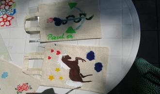 Weiterhin lernten die Teilnehmer/Innen im kleinem Kreis einfache Nähtechniken: gerade Stiche, Zickzackstich und das Anbringen von Knöpfen. Auch Beutel, kleine Stofftiere und Kissen wurden genäht, worauf alle sehr stolz waren.