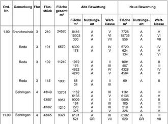 Die Änderungen der Wertermittlungsergebnisse wurden für die o.g. Flurstücke wegen der Eintragung von Leitungsrechten und zur Abhilfe von zwei Widersprüchen vorgenommen. Die Änderung der Wertermittlung auf dem Flurstück der Ord.Nr. 255.01 erfolgte von amtswegen.