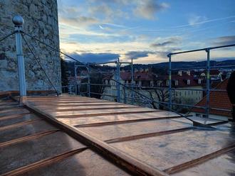 Die Sanierungsarbeiten am Treppenturm des Neideckturms konnten im Dezember erfolgreich abgeschlossen werden. Im Rahmen der Sicherungsmaßnahmen wurde die Dachkonstruktion des Treppenturms an die aktuellen Erfordernisse angepasst, um weiteren Wassereintritt und Schäden zu verhindern. Zuvor hatte die zu kleine Dachfläche dazu geführt, dass Feuchtigkeit ins Mauerwerk eindringen konnte und es nachhaltig schädigte.