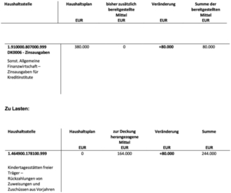 Genehmigung einer überplanmäßigen Ausgabe in der Haushaltsstelle 1.910000.807000.999 in Höhe von 80.000 EUR zu Lasten der Haushaltsstelle 1.464900.178100.999