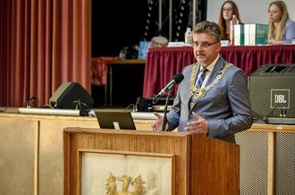 Bürgermeister Frank Spilling bei seiner Vereidigungsrede im Stadtrat