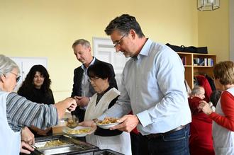 Zum Start der Ökumenischen Gastfreundschaft wurde das Essen vom Bürgermeister serviert.