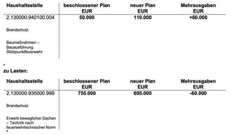 Der Finanzausschuss beschließt eine überplanmäßige Ausgabe in Höhe von 60.000 EUR in der Haushaltsstelle 2.130000.940100.004 - Brandschutz - Baumaßnahmen - Bauausführung Stützpunktfeuerwehr.