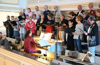 Jörg Reddin (Bildmitte, an der Orgel) leitet den Bachchor Arnstadt.
