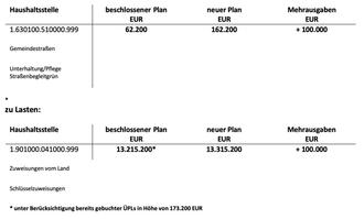 Der Finanzausschuss beschließt eine überplanmäßige Ausgabe in Höhe von 100.000 EUR in der Haushaltsstelle 1.630100.510000 - Gemeindestraßen - Unterhaltung/Pflege Straßenbegleitgrün.