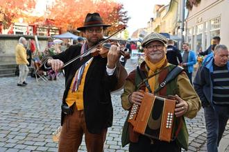 Zum Herbst- und Bauermakrt wird es wieder lustige Straßenmusik geben - wie 2024 vom Duo Liedfass.