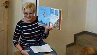 Monika Blechschmidt bei ihrer Leidenschaft: Der Geschichtenzeit in der Stadt- und Kreisbibliothek.