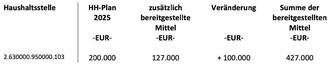 Genehmigung einer überplanmäßigen Ausgabe in der Haushaltsstelle 2.630000.950000.103 in Höhe von 100.000 EUR zu Lasten der Haushaltsstelle 2.630000.951000.103