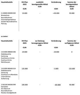 Der Finanzausschuss beschließt eine überplanmäßige Ausgabe in Höhe von 83.000 EUR in der Haushaltsstelle 2.130000.940000.002 - Brandschutz - Baumaßnahmen - Feuerwehrgerätehaus Dosdorf Baumaßnahme Planung.