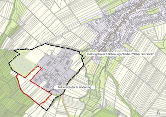 Mit der Rechtskräftigkeit der 5. Änderung wurden im gesamten Gewerbe- und Industriegebiet „Ober der Brück“ Solar-Freiflächenanlagen ausgeschlossen. Daher soll für den Teilbereich eine Änderung aufgestellt werden, der folgende Flurstücke betrifft: 2357/54 (teilweise), 639, 640, 641, 642/2, 642/3, 642/4, 643/3, 643/4, 643/5, 646/4, 646/8, 646/7, 646/6 (siehe Abbildung 1).
