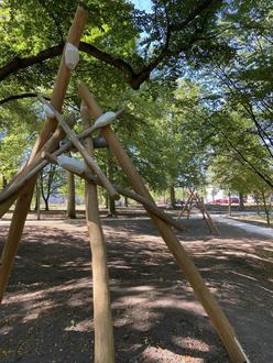 Man konnte die Aufregung der Kinder spüren, als sie die ersten sein durften, die den neuen Salzstangenspielplatz im Rathenaupark ausprobieren durften. Endlich waren die Pflanzen und Gehölze genug angewachsen, endlich konnten die Bauzäune abgebaut werden und endlich durften die Kinder frei durch den Park toben.