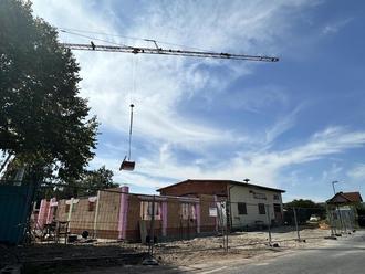 Der Baufortschritt ist gut sichtbar: Die Abbrucharbeiten sind abgeschlossen und die Bodenplatte ist bereits hergestellt. Zurzeit laufen die Beton- und Maurerarbeiten für den Neubau. Die Vergabeverfahren für die Gewerke Zimmerer und Dachdecker sind in Vorbereitung. Die bisher vergebenen Arbeiten liegen alle im geplanten Kostenrahmen. Nach aktueller Planung soll der Rohbau bis Ende 2025 fertiggestellt sein.