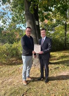 Bürgermeister Klaus Bohl berichtete, dass es in Bad Salzungen bereits vor den Eingemeindungen weit über 10.000 Bäume gab. Nun seien es durch die vielen Ortsteile unzählige mehr geworden. Sie alle zu hegen und zu pflegen, bedeutet viel Aufwand für den Bauhof der Stadt. „Viele Menschen machen sich für eine grüne Zukunft stark, aber selbst aktiv werden nur sehr wenige.“, erklärte Klaus Bohl. Daher sei er sehr froh darüber, Steven Gebhardt, selbst Mitarbeiter des Gebäude- und Liegenschaftsmanagements der Stadtverwaltung, als Baumpaten auszeichnen zu dürfen.