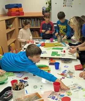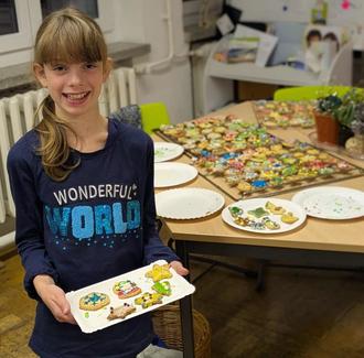 Rund 50 Kinder fanden sich zum kreativen Gestalten ein und werkelten, was das Zeug hielt. Gemeinsam mit den fleißigen Helfern des Fördervereins und einiger engagierter Mütter wurden Karten gebastelt, Geschenkanhänger dekoriert und selbstgebackene Plätzchen mühevoll verziert. Auch der Direktor der Grundschule, Wolfgang Kunerl, packte fleißig mit an. Dabei ließen sich alle Kinderpunsch, Kuchen und Lebkuchen schmecken.