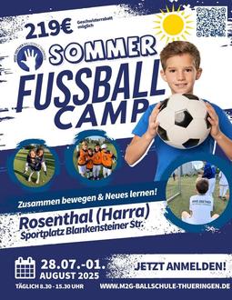 | • | vom 28.07.2025 bis 01.08.2025 im Sportpark Harra für Kinder im Alter von 6 bis 14 Jahren |