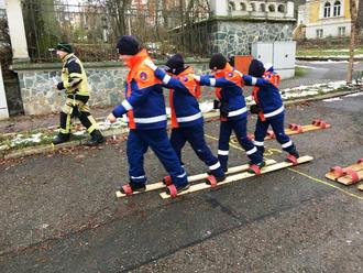 Weiterhin standen natürlich auch klassische Feuerwehraufgaben auf dem Programm wie Knotenkunde, Schlauchkegeln und Teamspiele.
